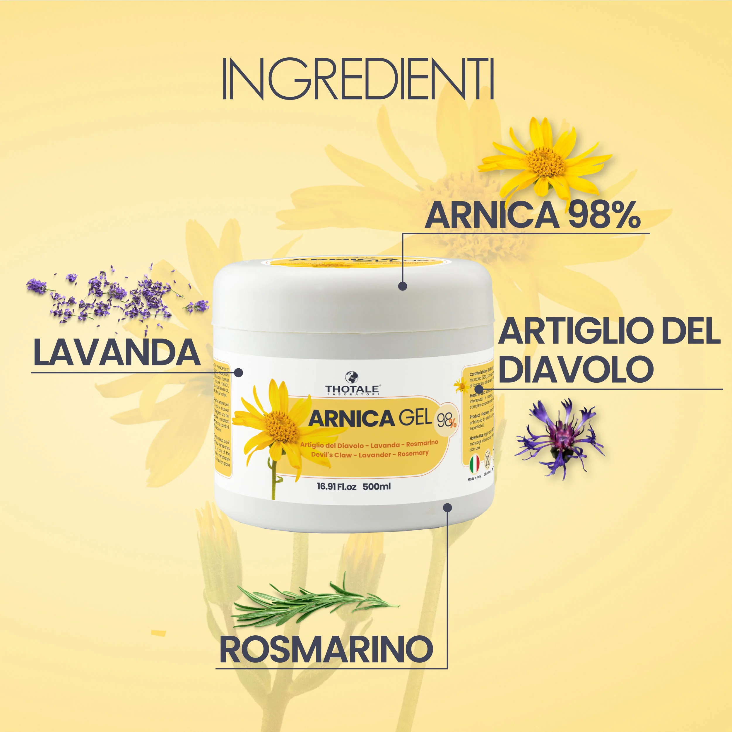 Thotale® Arnica Gel Extra Forte 98% con Artiglio del Diavolo | 500 ml | Sollievo per Muscoli e Articolazioni