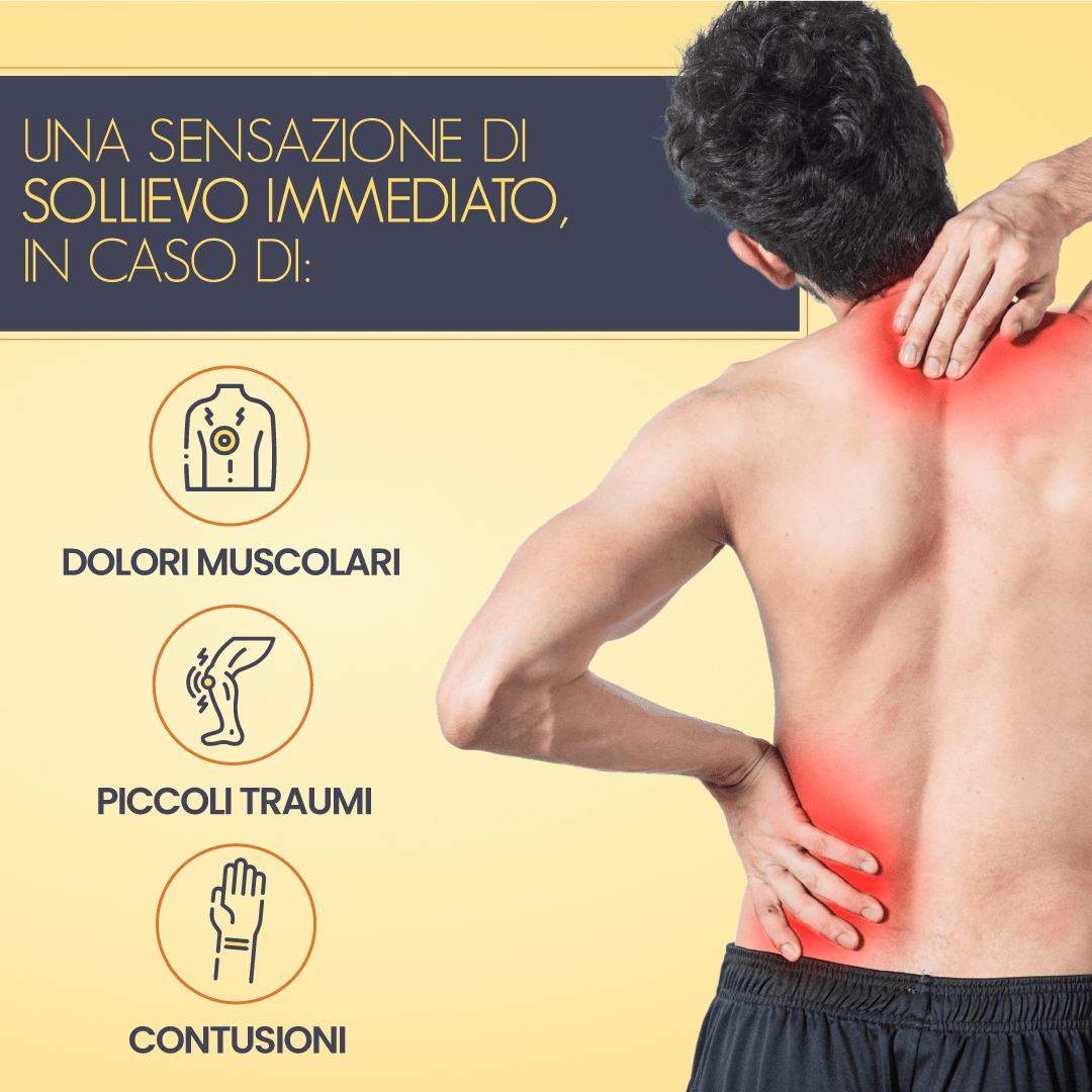 Il prodotto può essere usato sia per alleviare dolori temporanei come quelli dovuti a sforzi muscolari o infortuni, sia per dolori articolari o muscolari cronici, come l'artrite o altre condizioni infiammatorie.