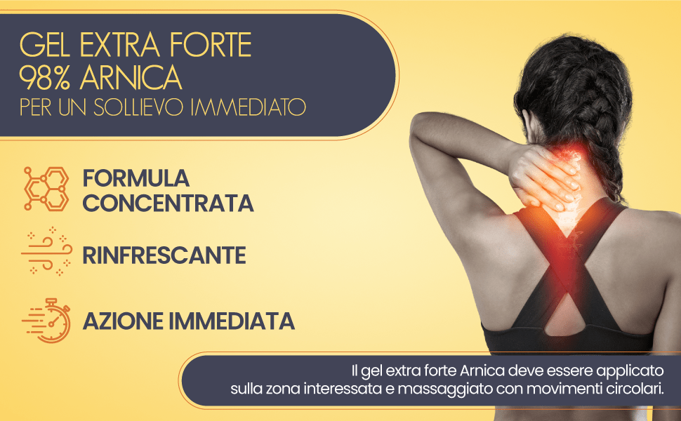 Gel ad alta concentrazione di Arnica Montana (98%) e Artiglio del Diavolo per un sollievo rapido da dolori muscolari, articolari e contusioni | Formula innovativa e senza parabeni | Azione mirata su aree localizzate.